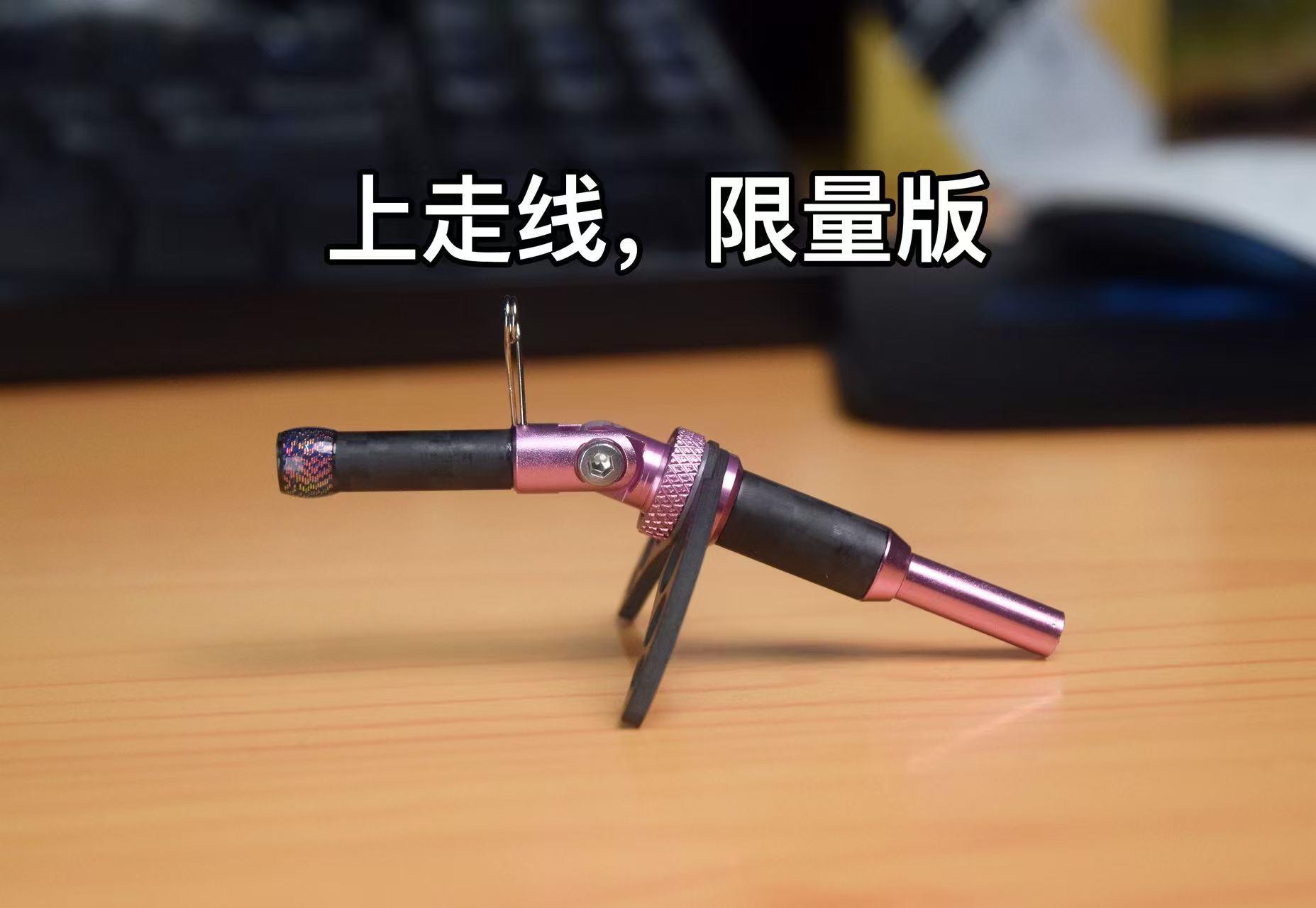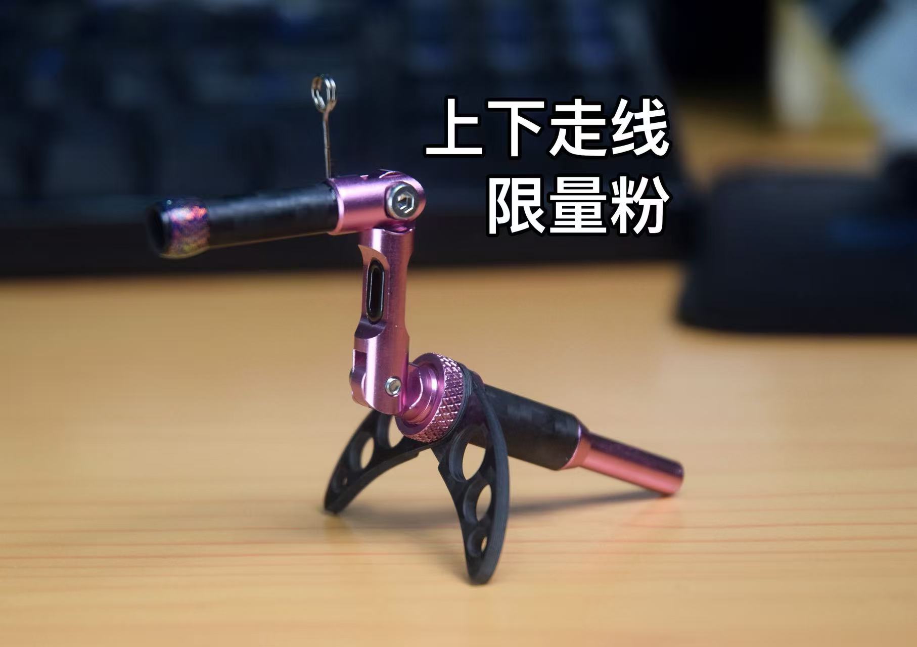三段式设计,第一段来自天鹅翅膀灵感设计的天鹅翼x型支架,起到良好支撑作用,开合角度可调,可适配绝大部分5mm电动公鱼轮,材料使用日本进口的高端东丽碳布做成,耐久好看,碳布光泽度非常漂亮。第二段为可选配设计,能支持导环向上的上走线和导环向下的下走线两种做钓方式。第三节可以定制延长节长度。